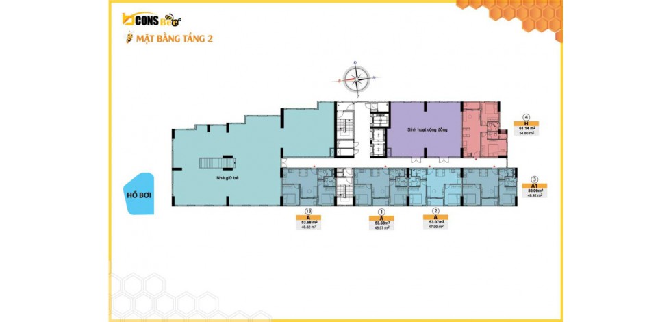 Các loại diện tích căn hộ Dự án Bcons Bee: ~33.48m2; ~45.51m2 – 45.52m2; ~48.16m2 – 53.07m2 – 53.10m2 – 54.15m2 – 55.30m2 – 61.14m2